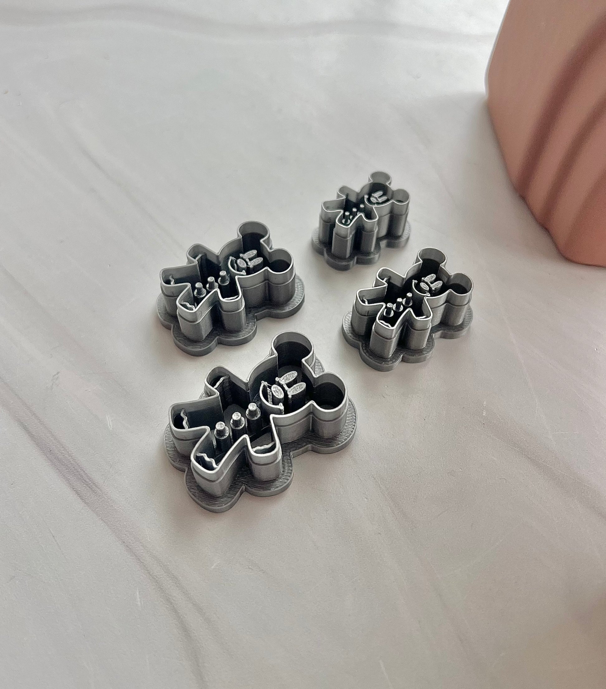 All cutters are 3D printed with PLA filament and may have some moderate irregularities that are to be expected with any 3D printed polymer clay cutter, but this will not affect the quality of your cutter or your cuts.