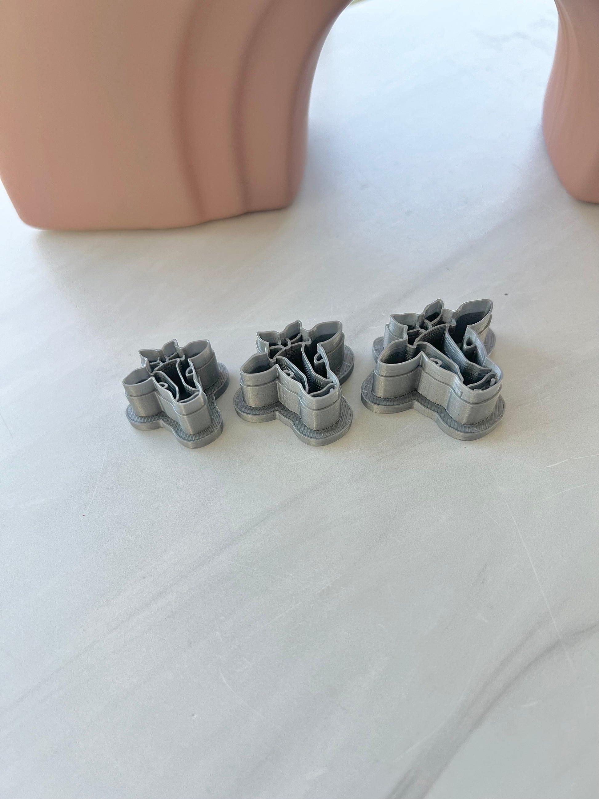 All our cutters are 3D printed with PLA filament and may have some moderate irregularities that are to be expected with any 3D printed polymer clay cutter, but this will not affect the quality of your cutter or your cuts.