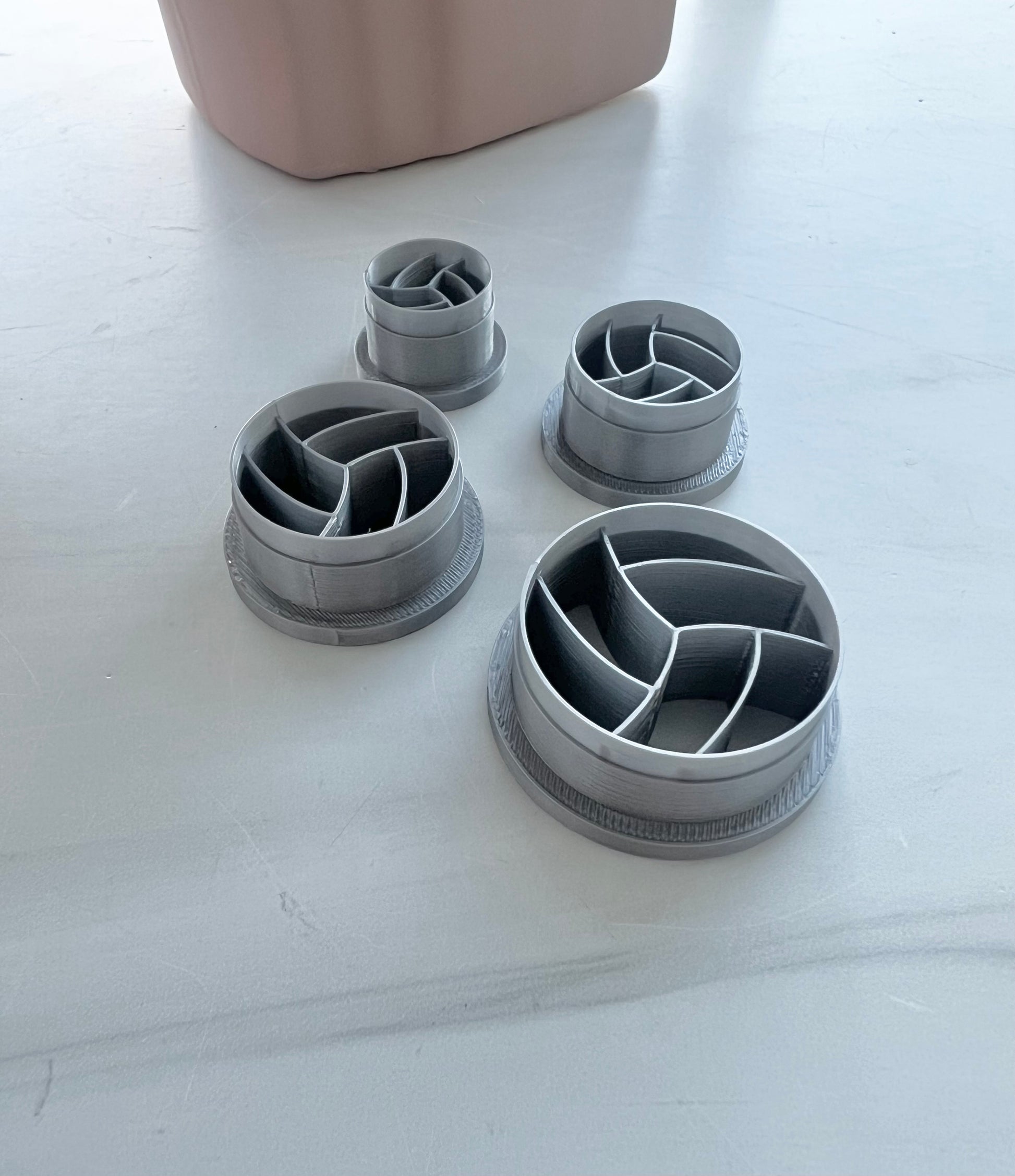 All cutters are 3D printed with PLA filament and may have some moderate irregularities that are to be expected with any 3D printed polymer clay cutter, but this will not affect the quality of your cutter or your cuts.